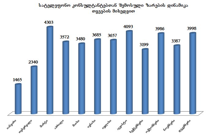 სატელეფონო კონსულტანტებთან შემოსული ზარების დინამიკა თვეების მიხედვით