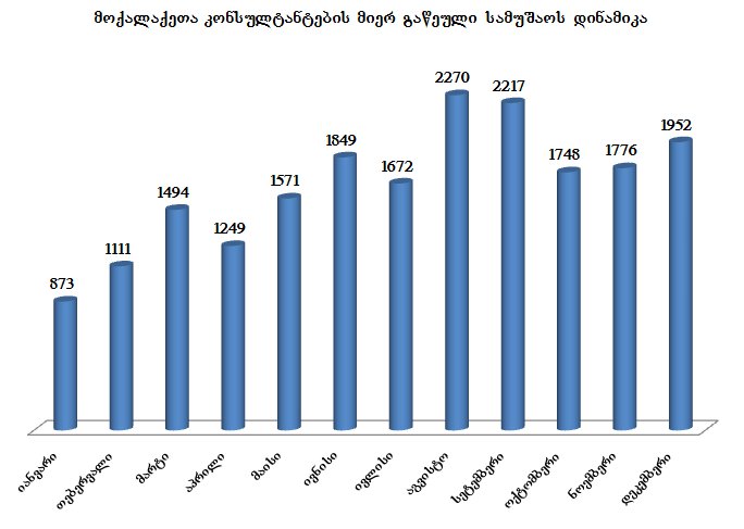მოქალაქეთა კონსულტანტების მიერ გაწეული სამუშაოს დინამიკა თვეების მიხედვით