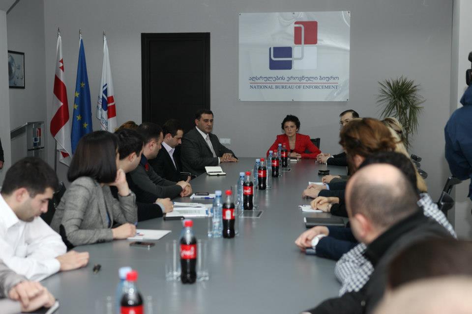 Министр юстиции Грузии представила сотрудникам Национального бюро исполнения куратора сферы. По решению министра, деятельность Национального бюро исполнения будет курировать первый заместитель министра, г-н Давид Джандиери. После представления куратора, встреча продолжилась в режиме «вопрос-ответ». Министр юстиции выслушала мнение сотрудников Национального бюро исполнения об существующей обстановке в сфере и ответила на вопросы. После встречи с менеджментом бюро, Теа Цулукиани посетила других сотрудников Национального бюро исполнения на своих рабочих местах и получила на месте информацию о рабочих процессах, существующих проблемах и достижениях в сфере.