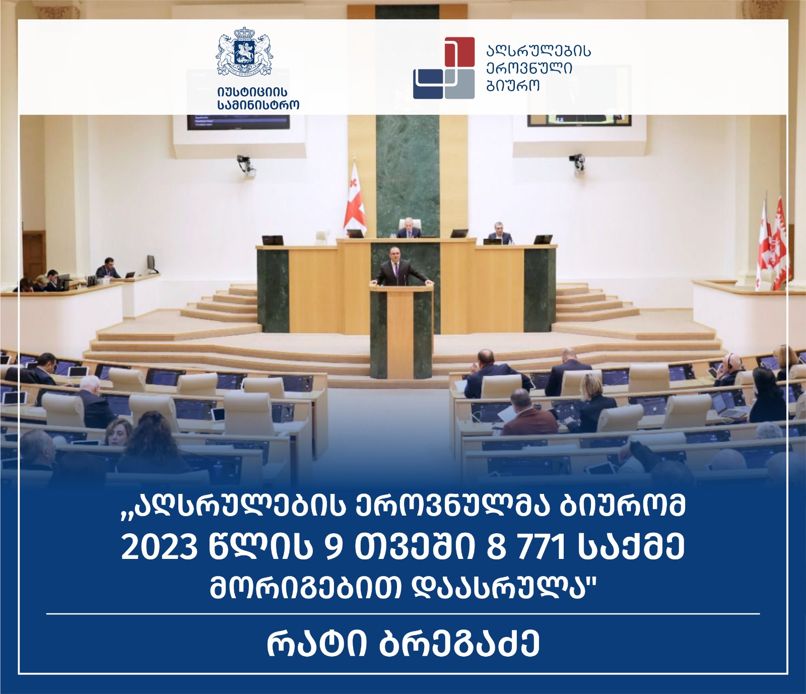Rati Bregadze, the Minister of Justice of Georgia, addressed the Parliament to discuss the mediation process introduced by the National Bureau of Enforcement.